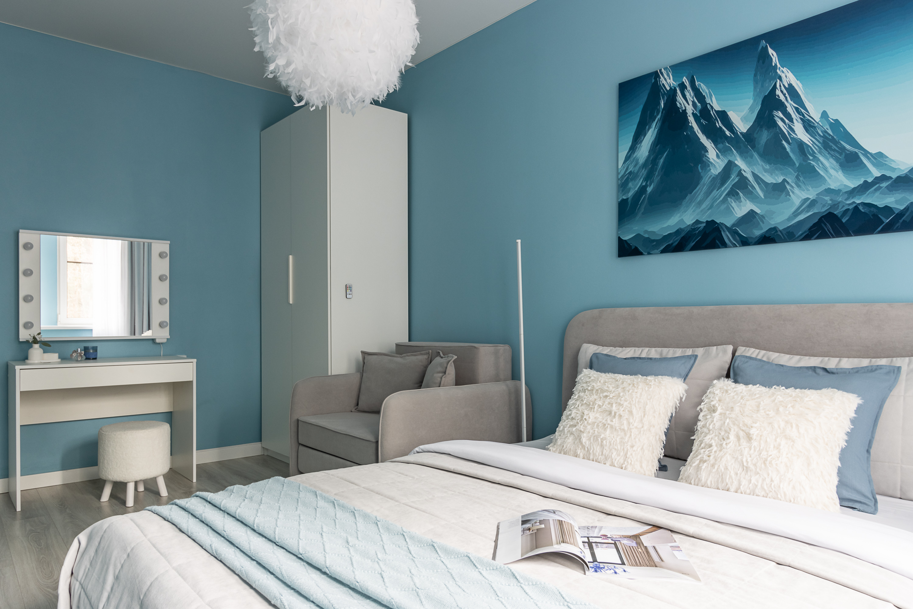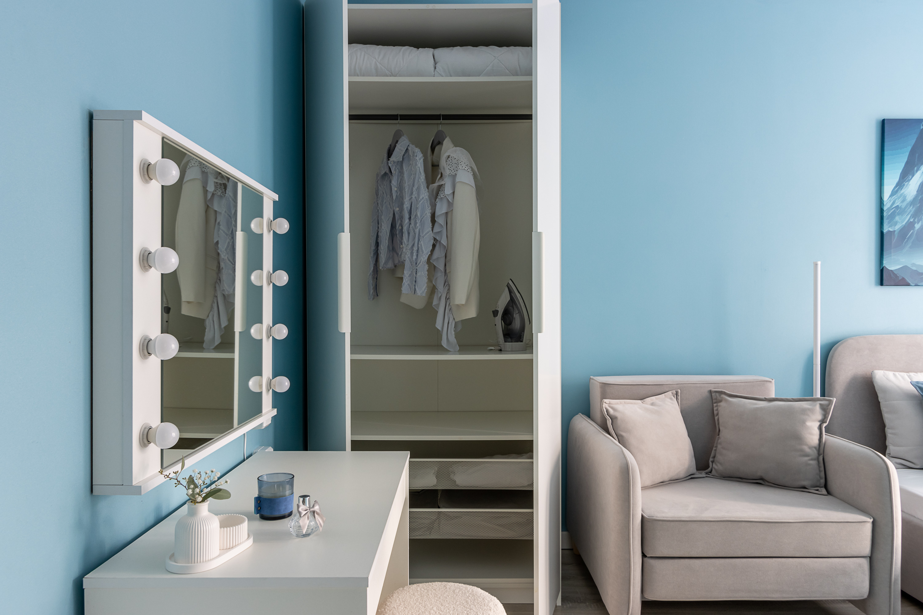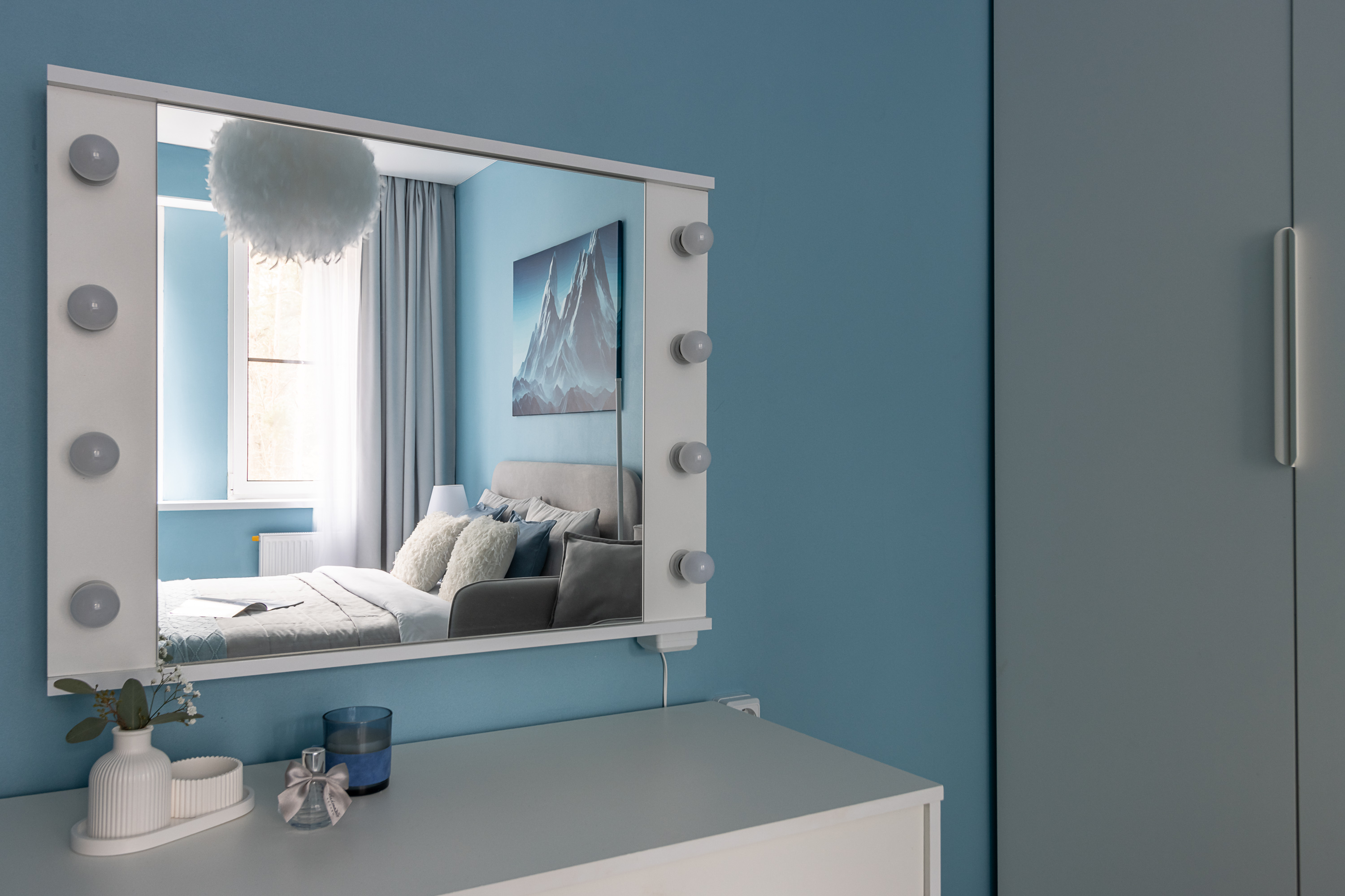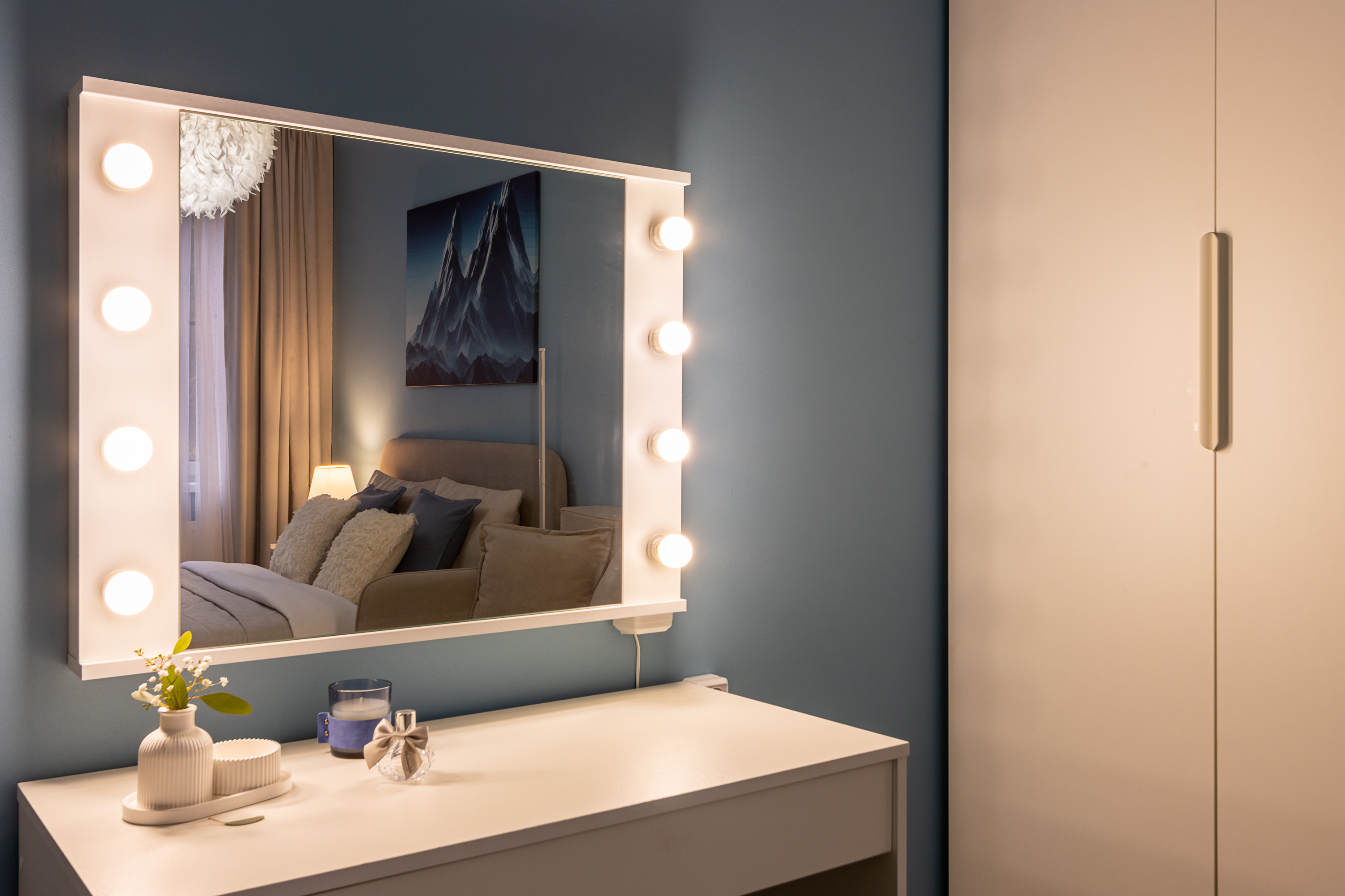 ⚪ Стиль и функционал: косметический столик с подсветкой и спальня с волшебной атмосферной подсветкой.