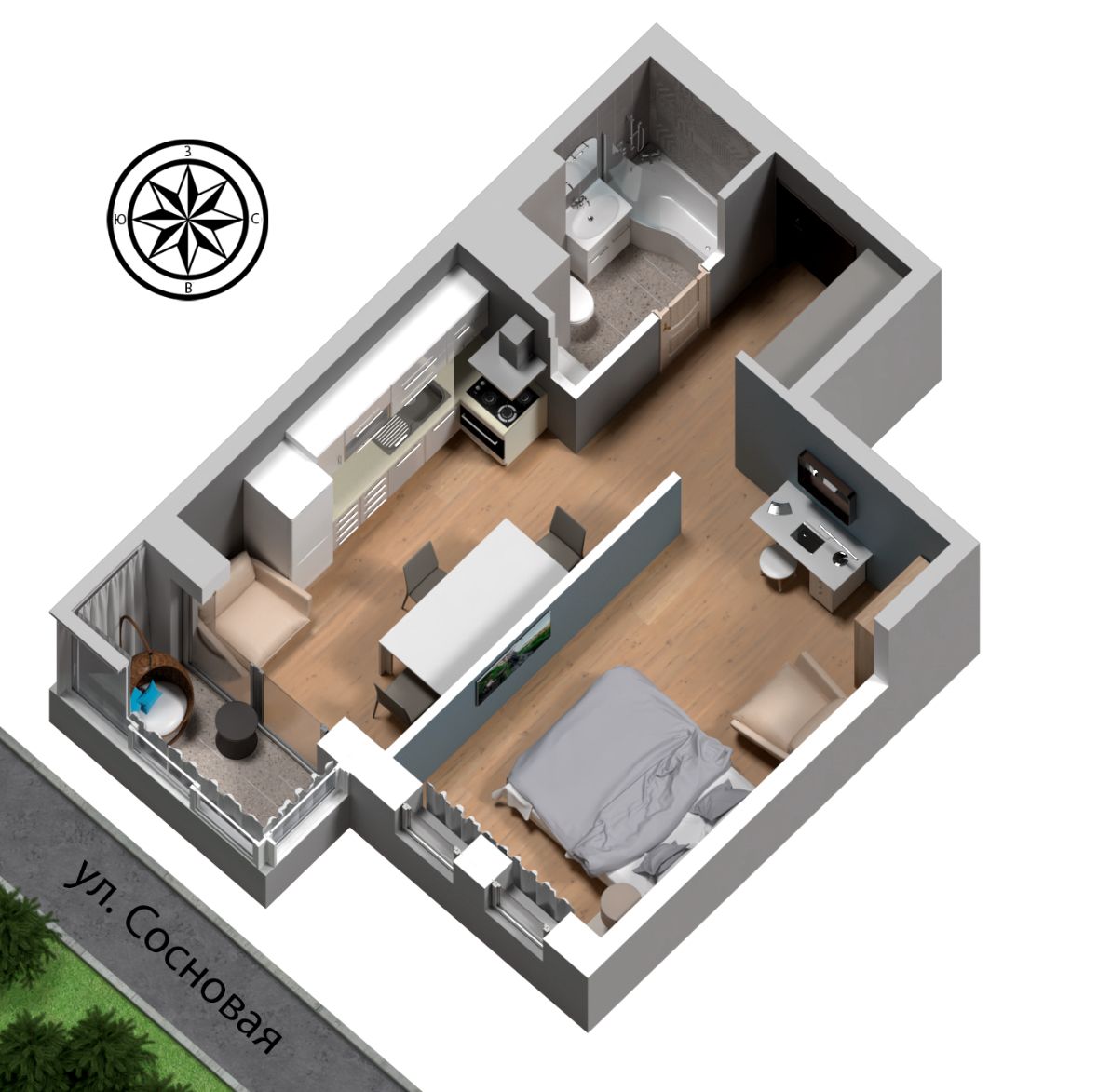1-комнатная квартира с дизайнерским ремонтом в ЖК «Курортный» в Зеленогорске.